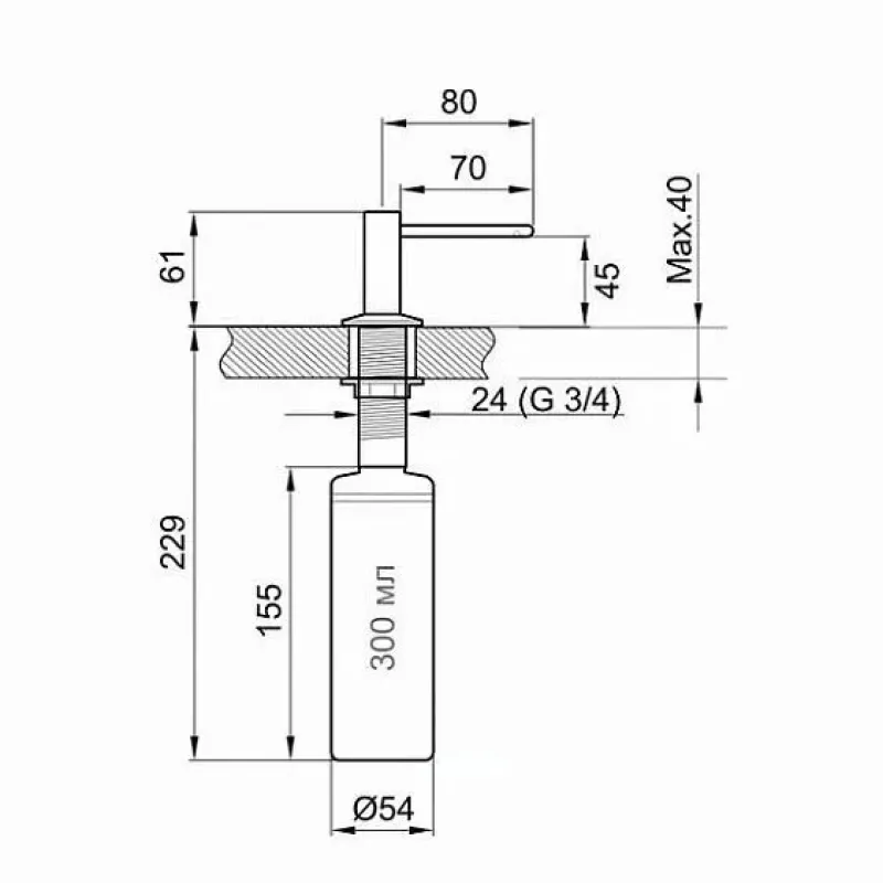 | Диаметр отверстия под дозатор | 30 мм |