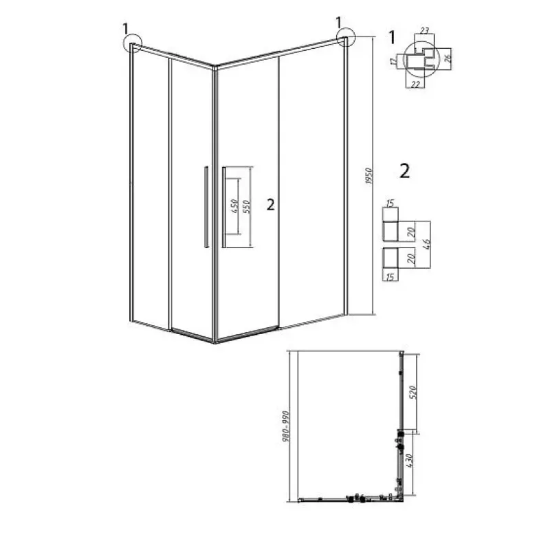 | Тип | 1/2 душевого ограждения |