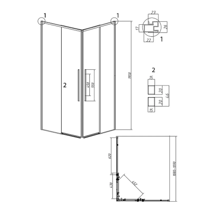 | Тип | 1/2 душевого ограждения |