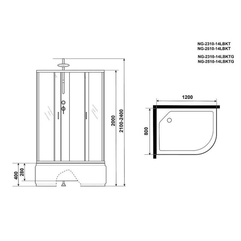 Душевая кабина NIAGARA NG-2510-14LBKT*