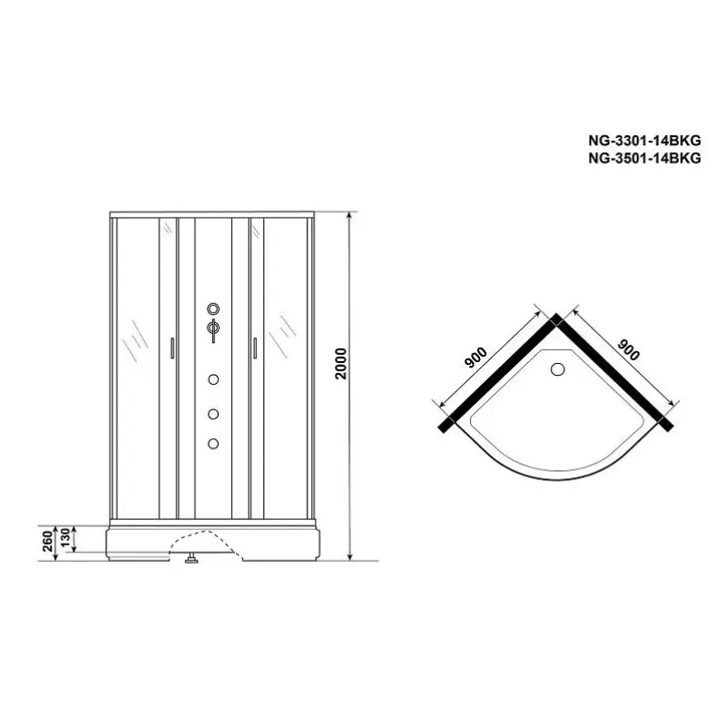 Душевая кабина NIAGARA NG-3301-14BKG*