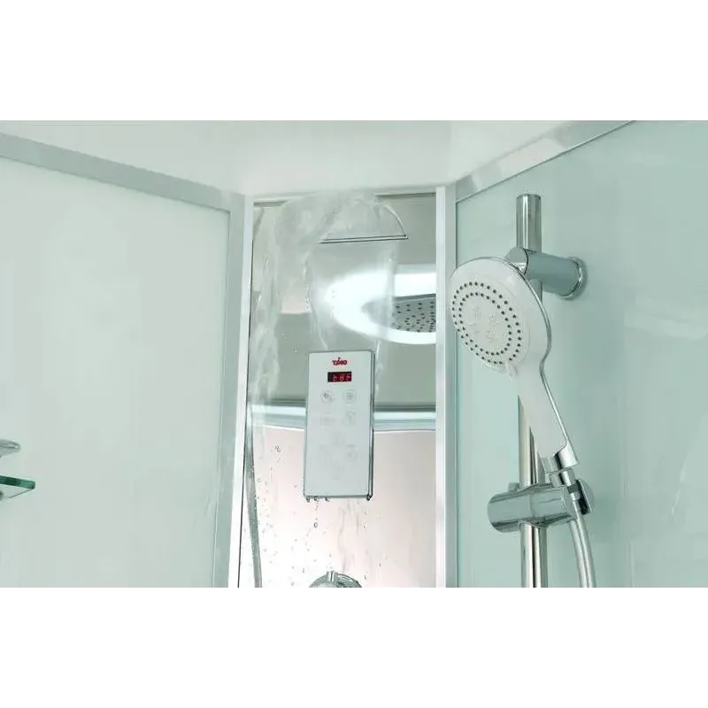 | Входит в комплект | смеситель, полка, система гидромассажа, тропический (верхний) душ, крыша, вентиляция, освещение, радио |