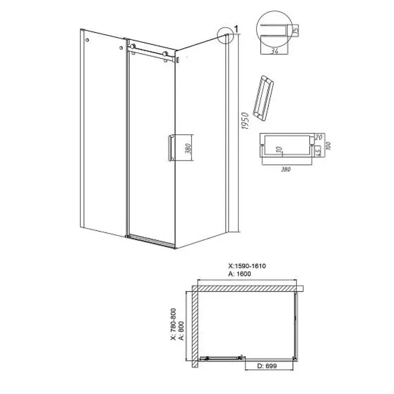 Душевое ограждение GROSSMAN 100.K33.04.160.21.10-200.K33.04.80.21.10 черный матовый*