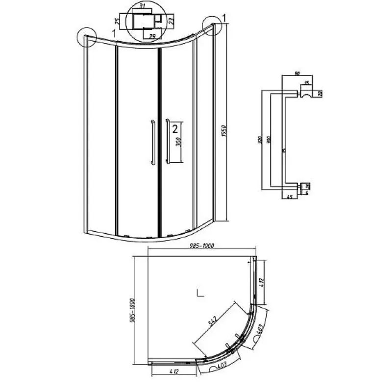 | Форма | четверть круга |