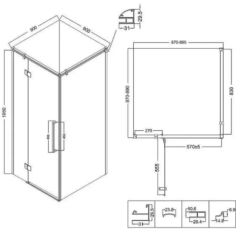 | Габариты (ШхГхВ) | 90x90х195 см |