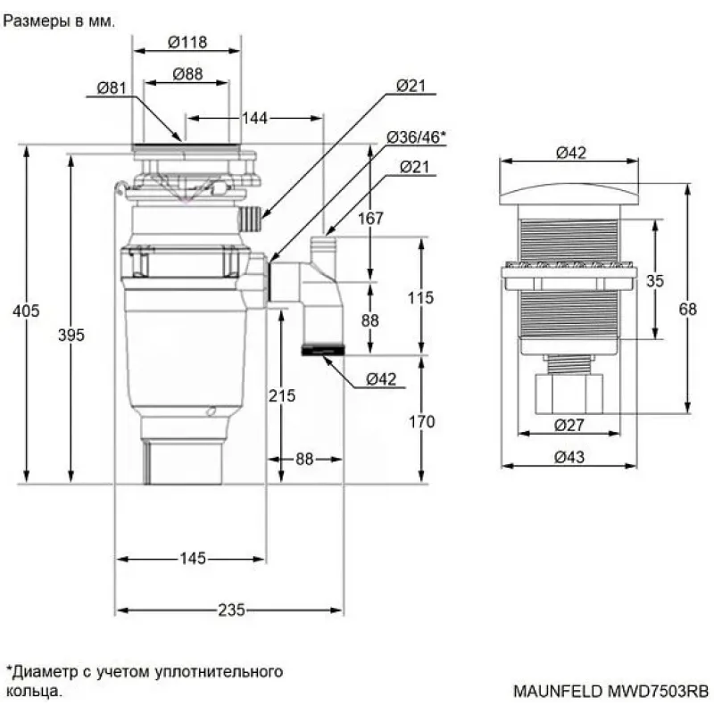 Измельчитель пищевых отходов MAUNFELD MWD7503RB*