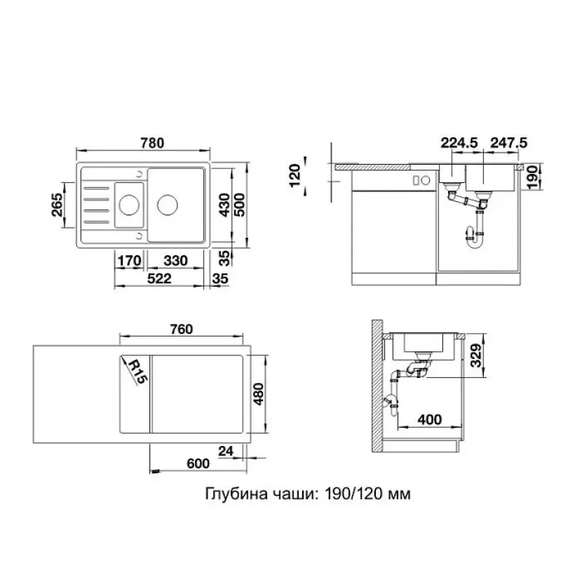 | Габариты малой чаши (ГхШхД) | 120х170х265 мм |