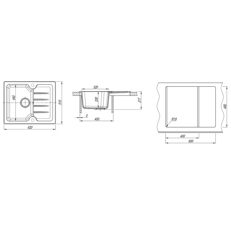 Кухонная мойка DR.GANS Лора (620х510х217) Базальт (25.020.A0620.409)*