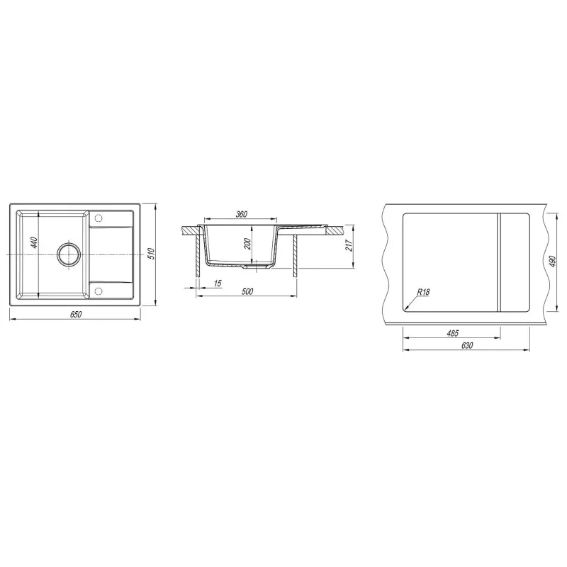 Кухонная мойка DR.GANS Техно (650х510х217) Базальт (25.030.C0650.409)*