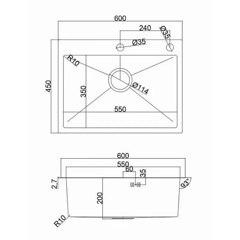 | Габариты мойки (ШхГхВ) | 600х450х200 мм |