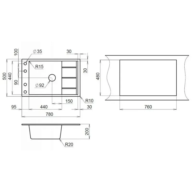 | Форма мойки | прямоугольная |