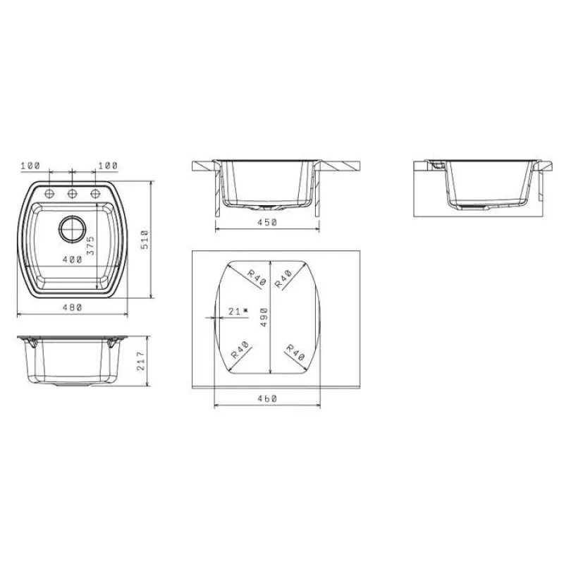 Кухонная мойка FLORENTINA нире 480 грей*