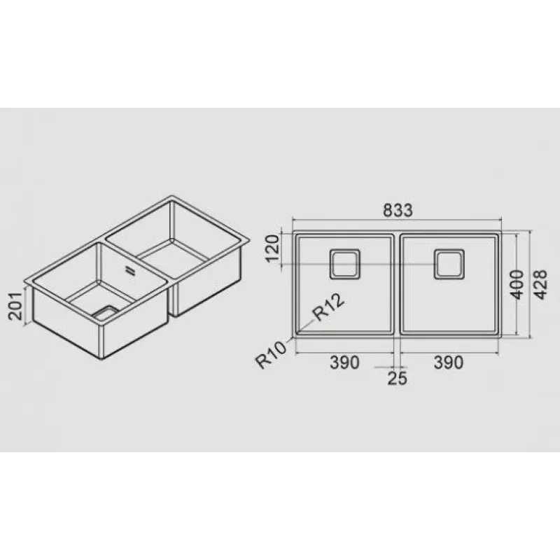 | Радиус скругления мойки | 1 см |