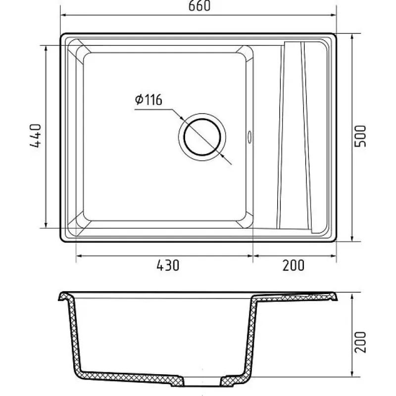 Кухонная мойка GRANFEST LEVEL GF-LV-660L черный*