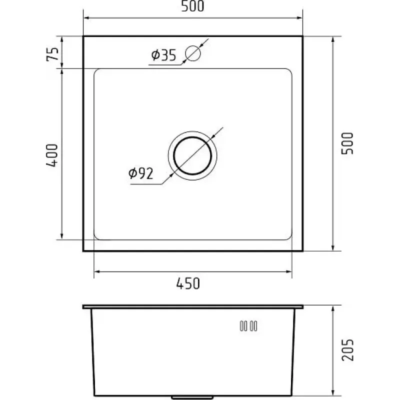 | Диаметр сливного отверстия | 92 мм |