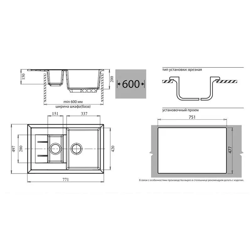 | Минимальная ширина шкафа | 600 мм |