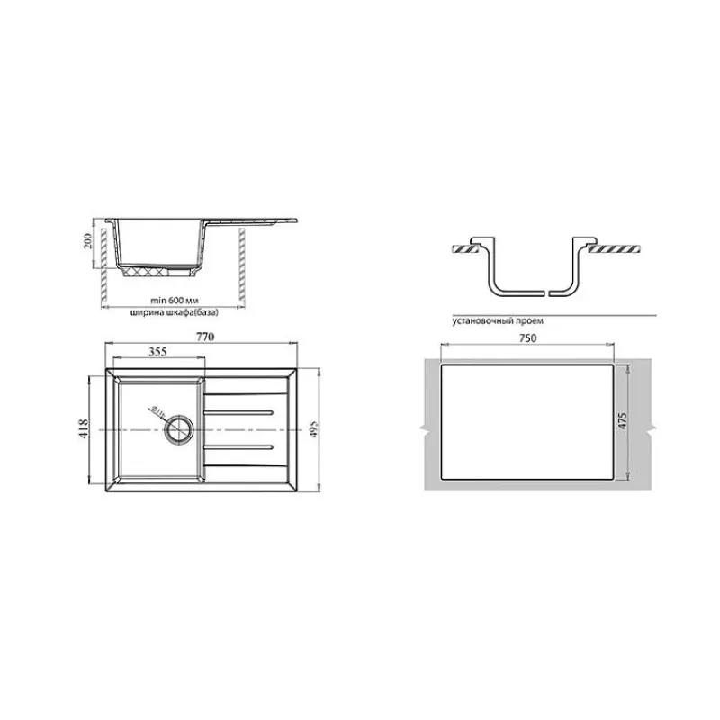 | Габариты мойки (ШхГ) | 770х495 мм |