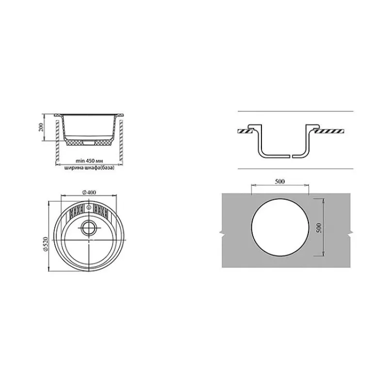 Кухонная мойка GRANFEST Rondo GF-R520 серый*