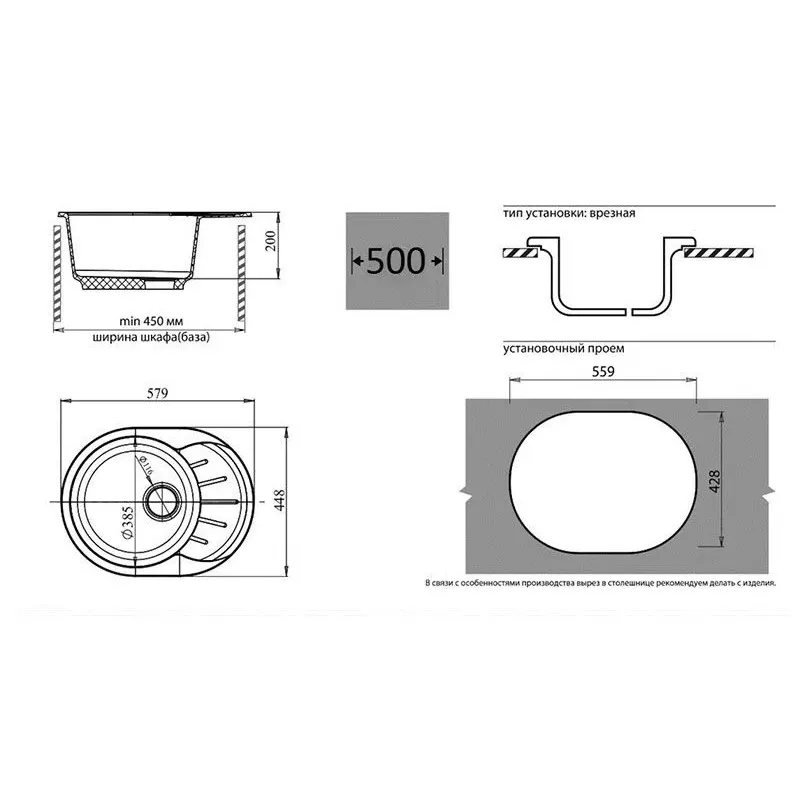 | Установочный проем | 559х425 мм |