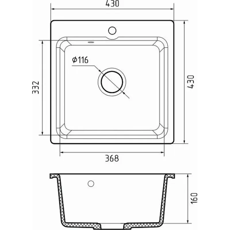 | Отверстия под смеситель | 1 отверстие |