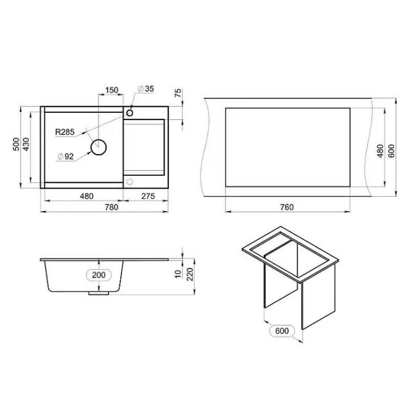 Кухонная мойка GRANULA ES-7807 черный*