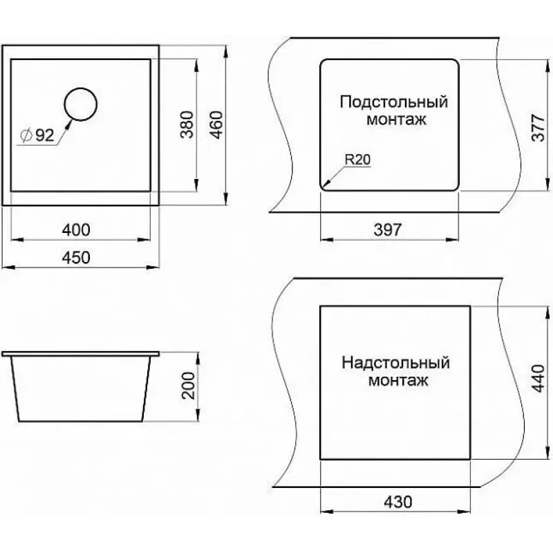 | Радиус угла скругления чаши | 20 мм |