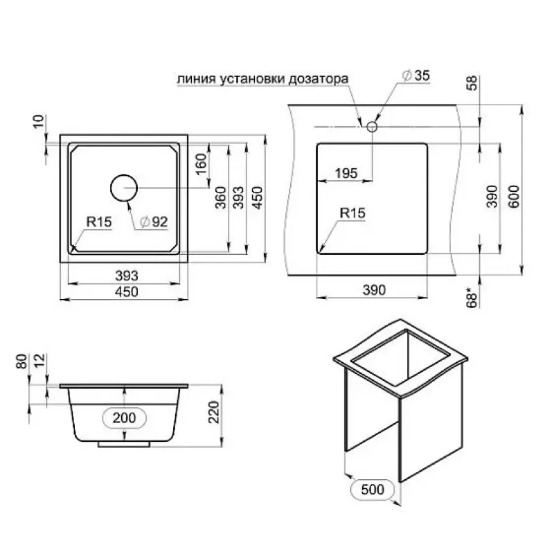 | Габариты чаши (ШхГхВ) | 395х395х200 мм |