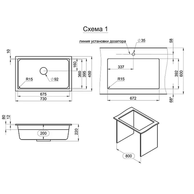 | Установочный шкаф | 800 мм |