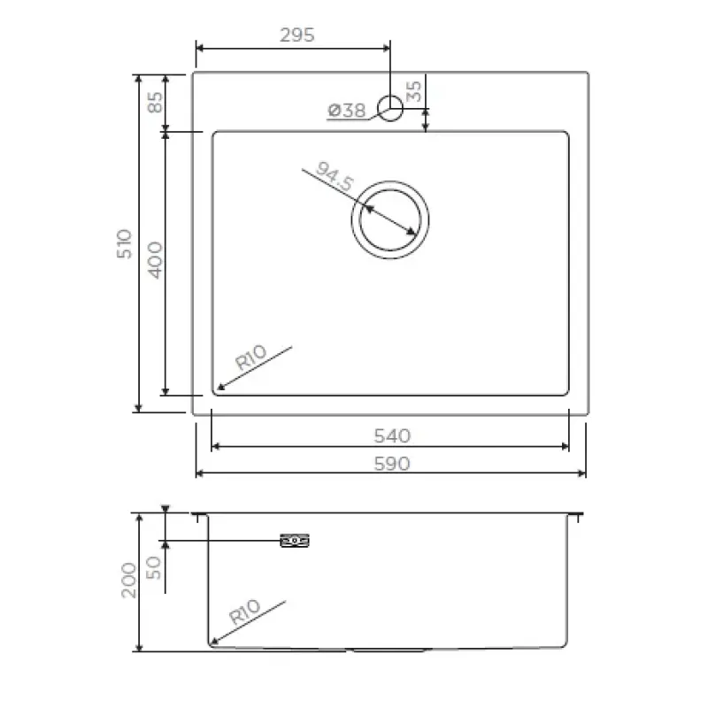 | Угловой радиус врезки | 10 мм |