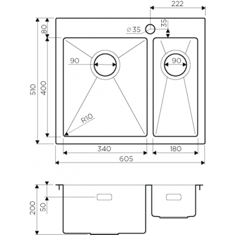 | Размер мойки | 510х605 мм |