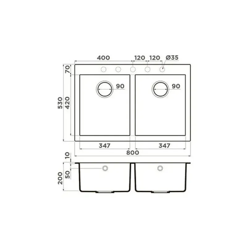 | Габариты чаш (ВхШхГ) | 200х347х420 мм |