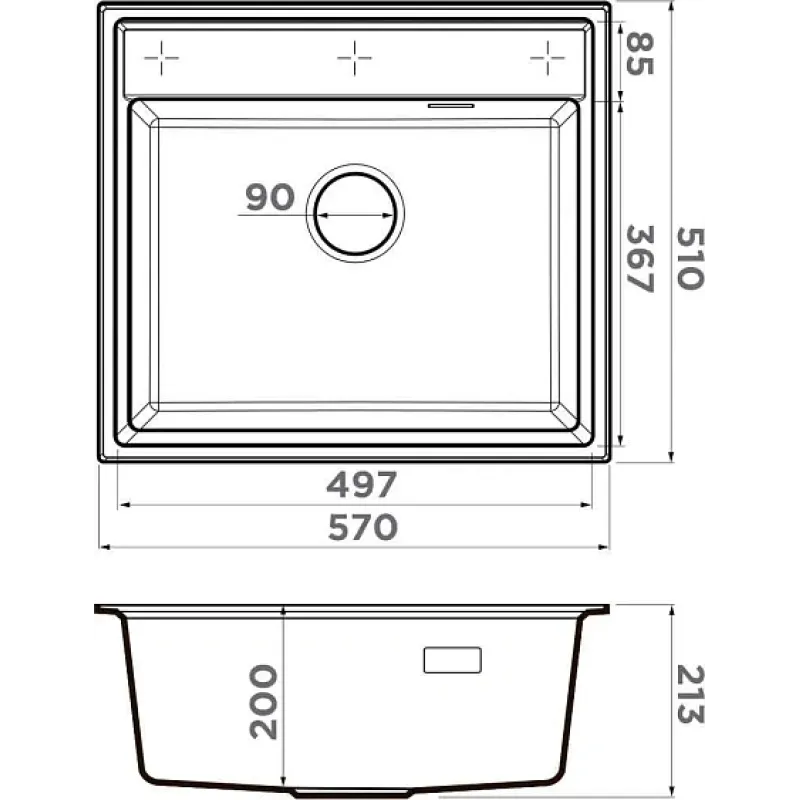 | Размер мойки (ШхДхГ) | 570х510х213 мм |
