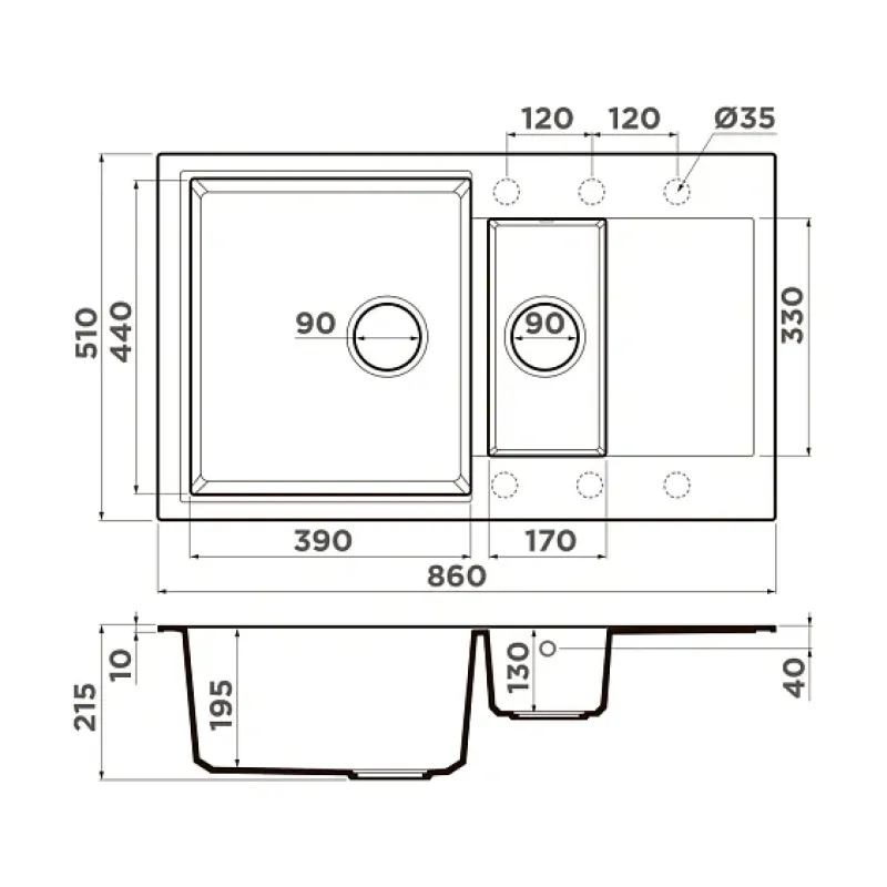 | Размер чаши | 390x440 мм / 170x330 мм |
