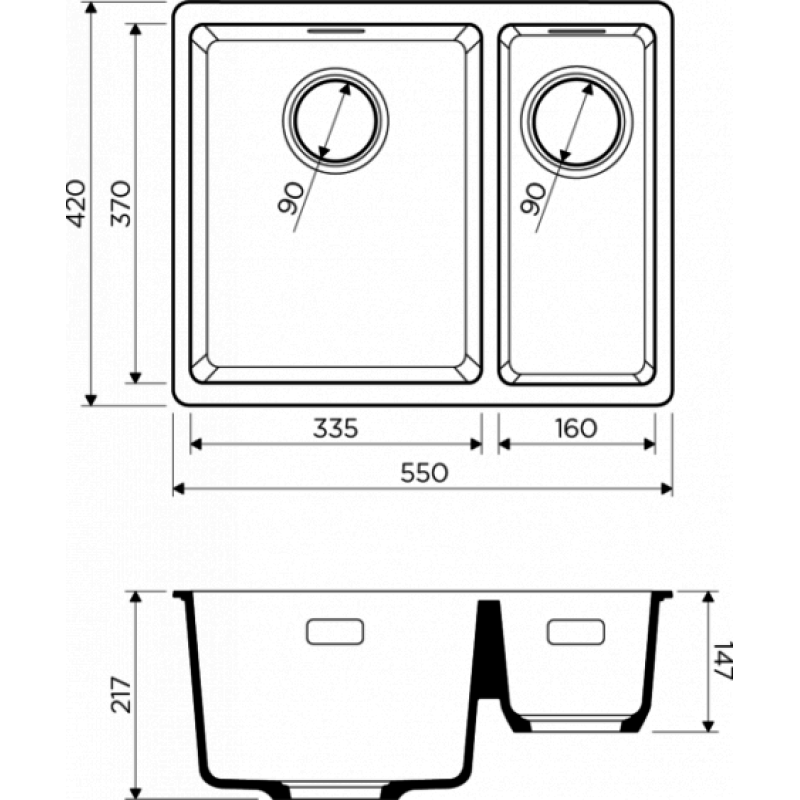 | Размер чаши | 370х335 / 370х160 мм |