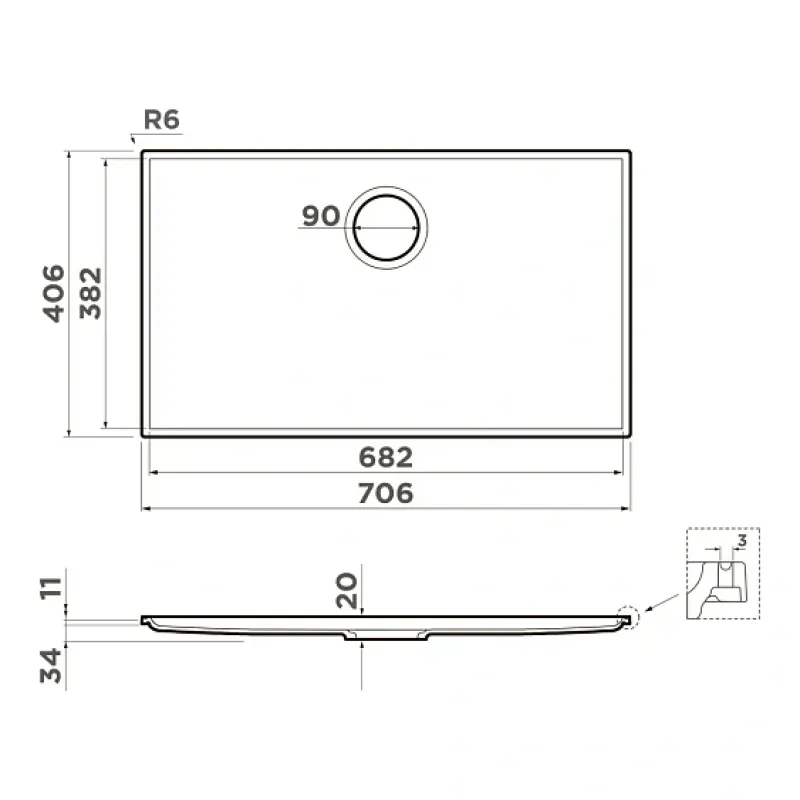 | Габариты чаши (ВхШхГ) | 20х682х382 мм |