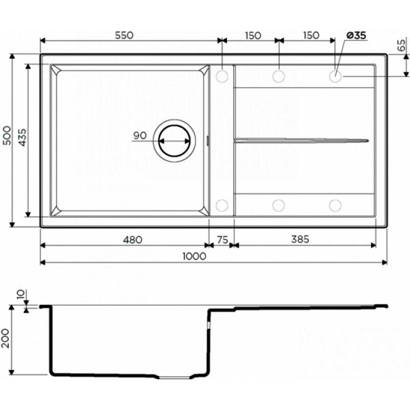 | Размер выреза под мойку | 480х980 мм |