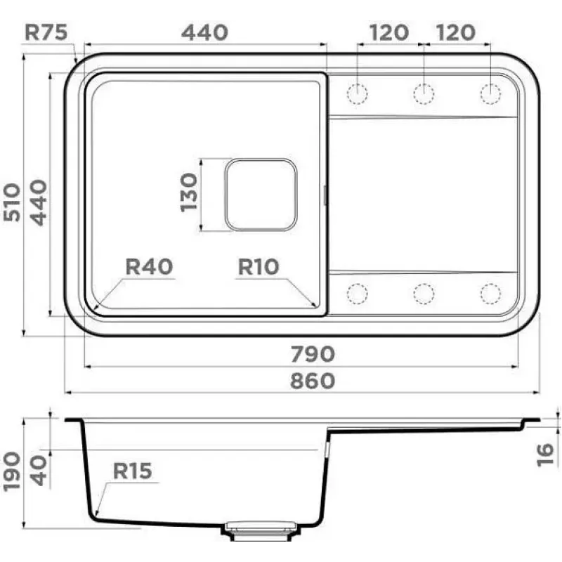 | Размер выреза под мойку | 490х840 мм |