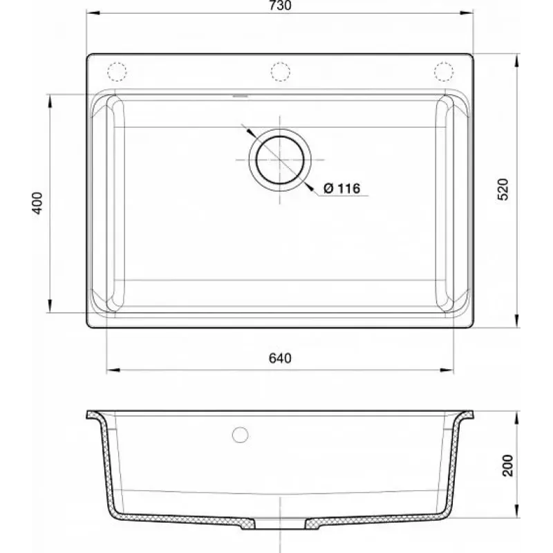 | Габариты чаши (ВхШхГ) | 200х640х400 мм |