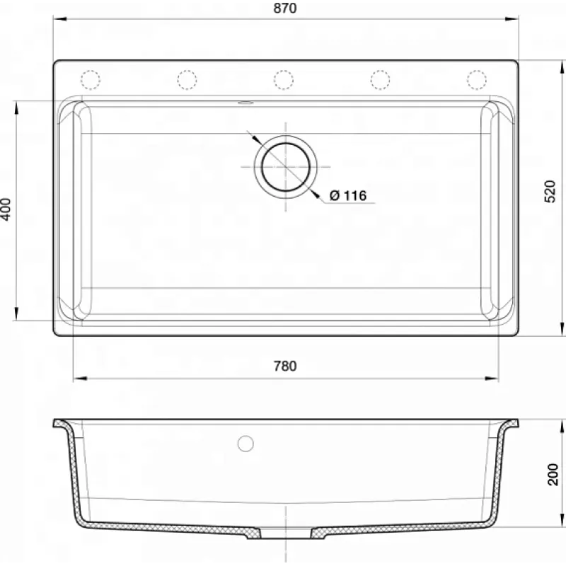 | Габариты чаши (ВхШхГ) | 200х780х400 мм |