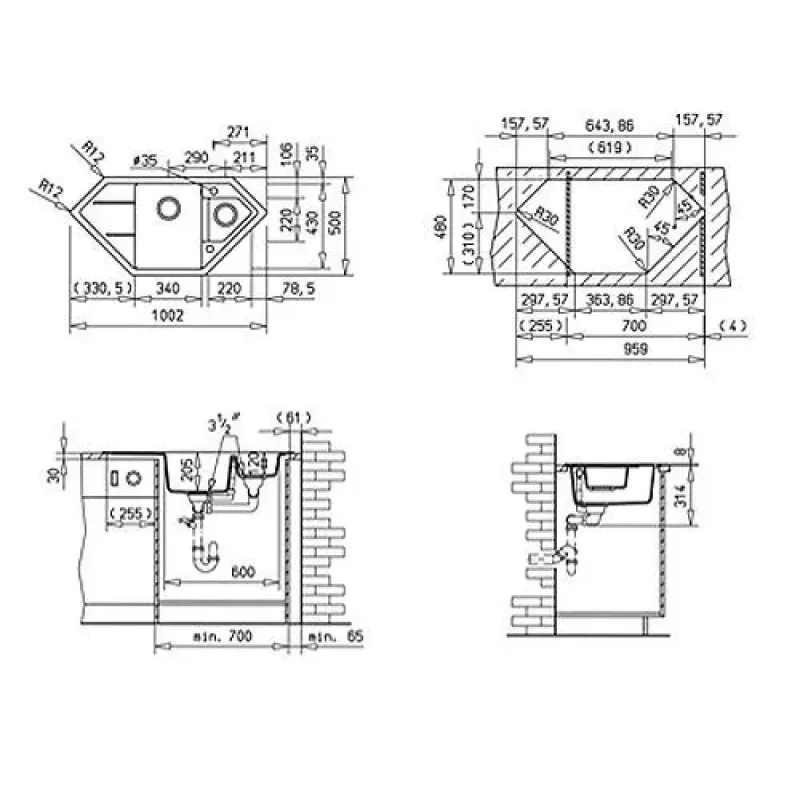| Форма мойки | угловая |