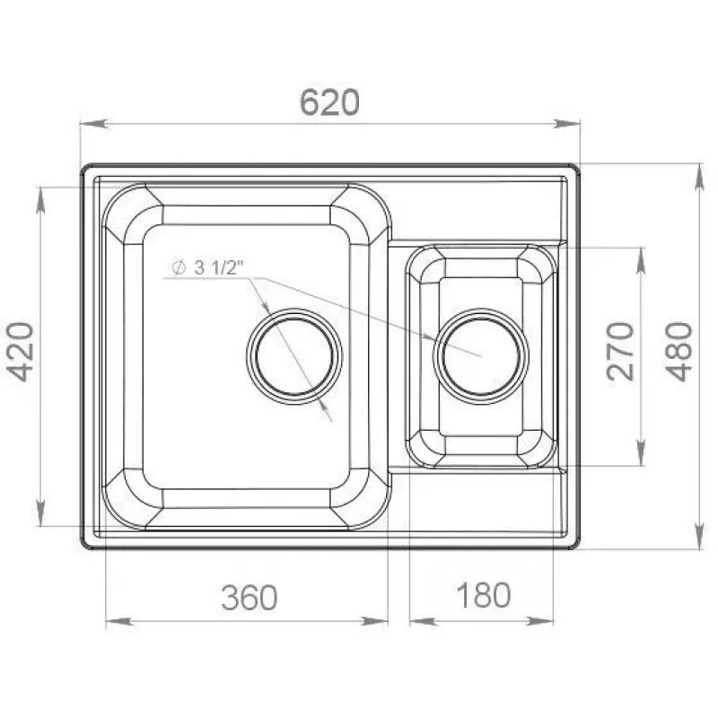 | Диаметр сливного отверстия | 3 1/2 " |