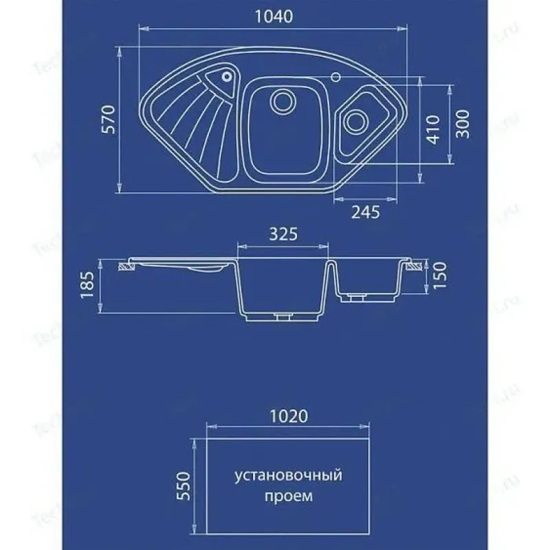 | Размер монтажного отверстия под мойку (Ш х Г) | 102 x 55 см |