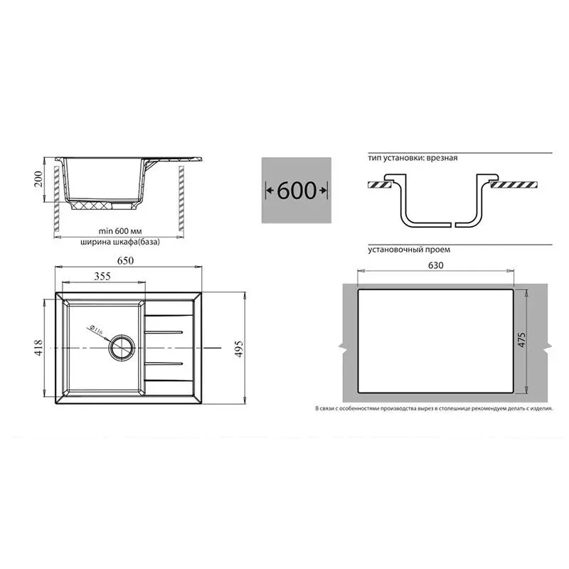 | Минимальная ширина шкафа | 600 мм |