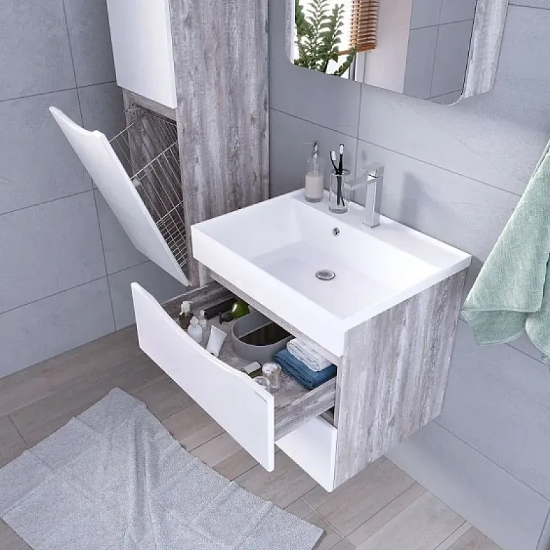 Тумба подвесная GROSSMAN ТАЛИС 70 см бетон пайн/белый глянец 107011*