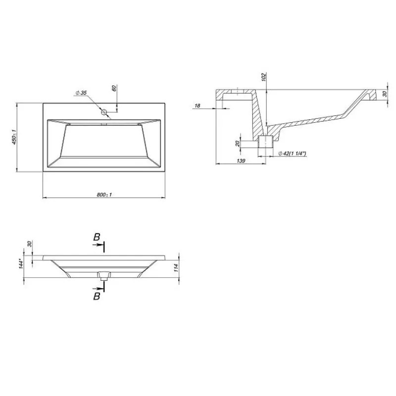 | Отверстия под смеситель | 1 отверстие |