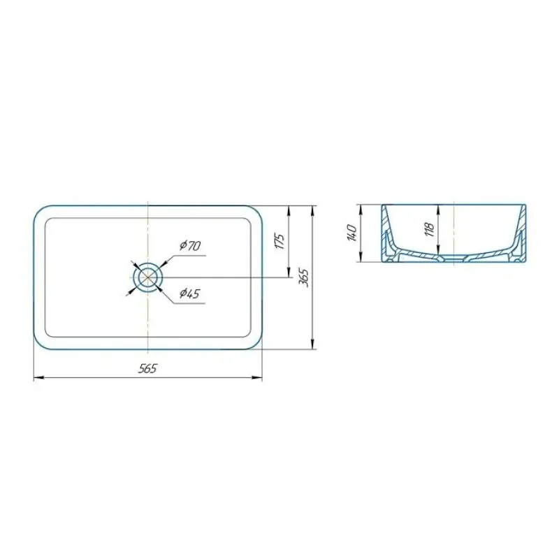 | Диаметр сливного отверстия | 45 мм |