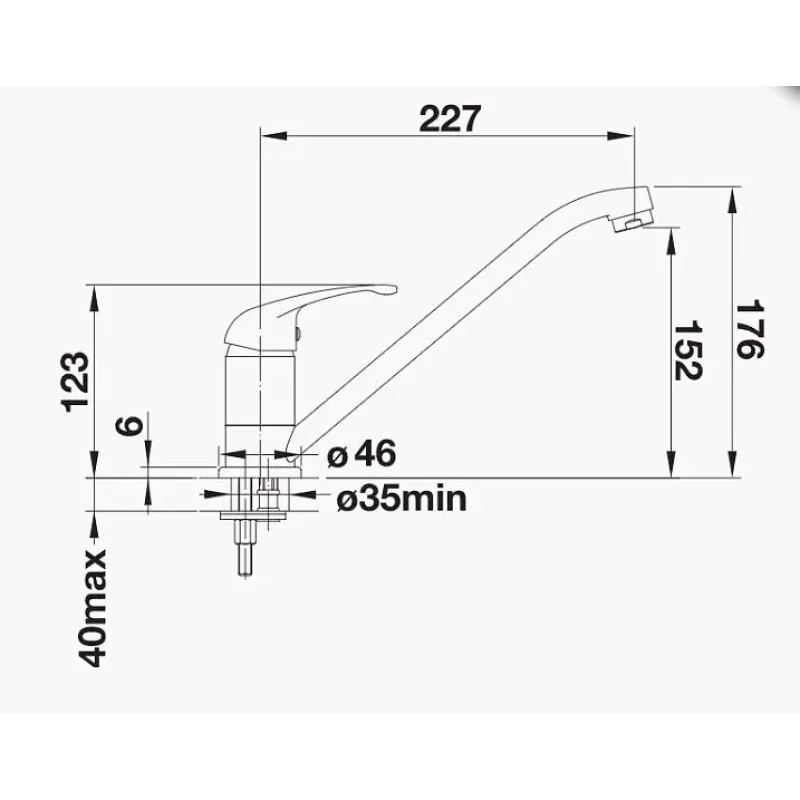 | Длина излива | 227 мм |