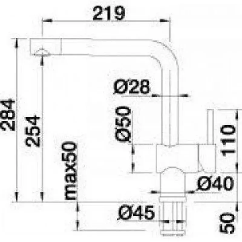 | Длина излива | 219 мм |