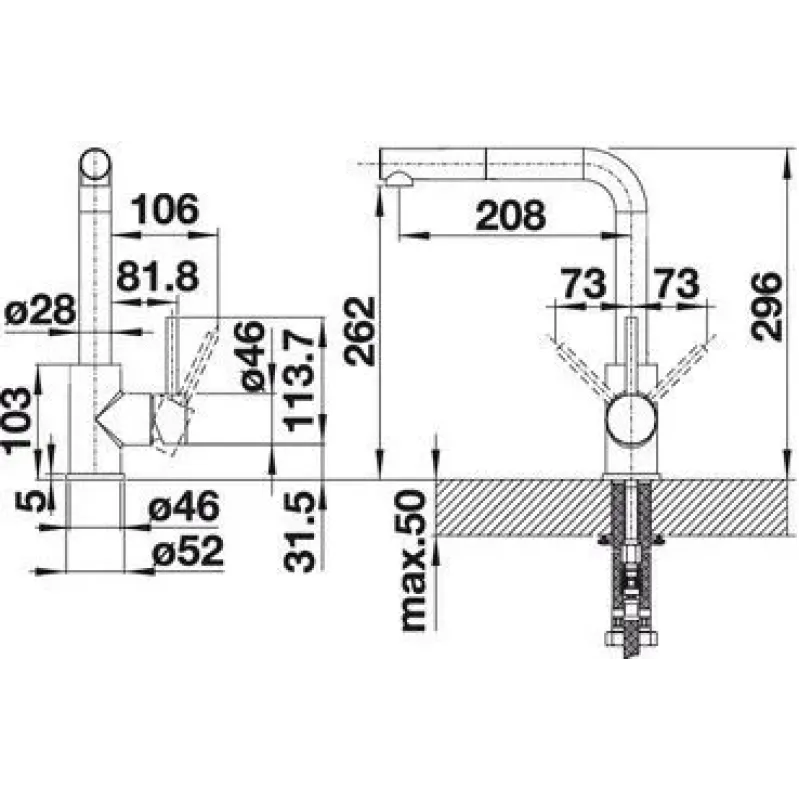 | Высота смесителя | 296 |