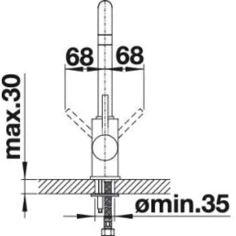 | Комплектация | однорычажный смеситель, вращающийся излив, требуется отверстие под смеситель Ø 35 мм, керамический дисковый картридж, легкое подключение гибкими шлангами длиной 350 мм с гайкой ⅜“ |